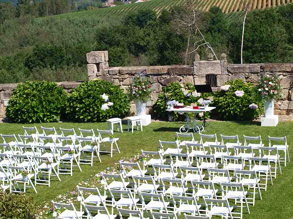 El estilo de la edificación, sus zonas ajardinadas… pero sobre todo el paisaje bucólico que lo envuelve convierten a Casal de Armánen un lugar con encanto y una buena opción para los que deseáis celebrar vuestra boda en Ourense.